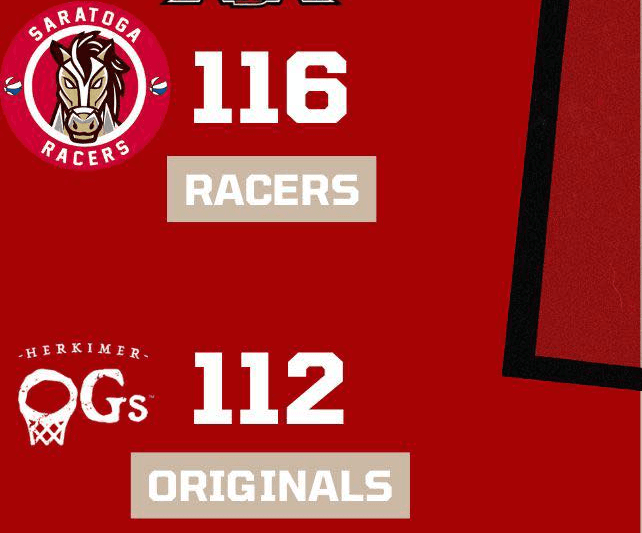 Juwan Malone and Keishaun Wheelings teamed up to lead Saratoga Racers past Herkimer Originals, 116-112, on Sunday at Joe Loudis Court. Wheelings scored 18 points and grabbed 10 rebounds while Malone scored 28 points. This was the Racers 7th straight win to improve to 11-3, including the season 4 game sweep of the Original’s. Trailing 8-7, Saratoga Racers went on an 11-point run to take the lead. Saratoga Racers led 49-47 at halftime. The fourth quarter was the best for Saratoga Racers as they outscored Herkimer originals 42-29. John Ryals III scored 13 points in the quarter. Malone scored 28 points to lead Saratoga Racers. Isaiah Grandison led the team with 13 rebounds. Saratoga Racers passed the ball well with 23 assists on 44 made baskets. Donovan Williams led the team with eight assists. Saratoga Racers's ball pressure forced 21 steals in the game. Williams led the team with six steals. Also contributing with double figures for Saratoga Racers were Wheelings (18 points), Ryals III (17 points), Williams (16 points), Terrell Camp (11 points). Josh Gregory led Herkimer Originals in scoring with 32 points and Rebounding with 22 rebounds. Next up for Saratoga Racers is a game at the Hudson Valley Rivermen (Sullivan County Community College) on Friday at 6:30pm. This will be the first ever match up between the Racers and Rivermen. The Racers return home on February 27th at 7pm when the Rochester Royal Ballers come to Joe Loudis Court.